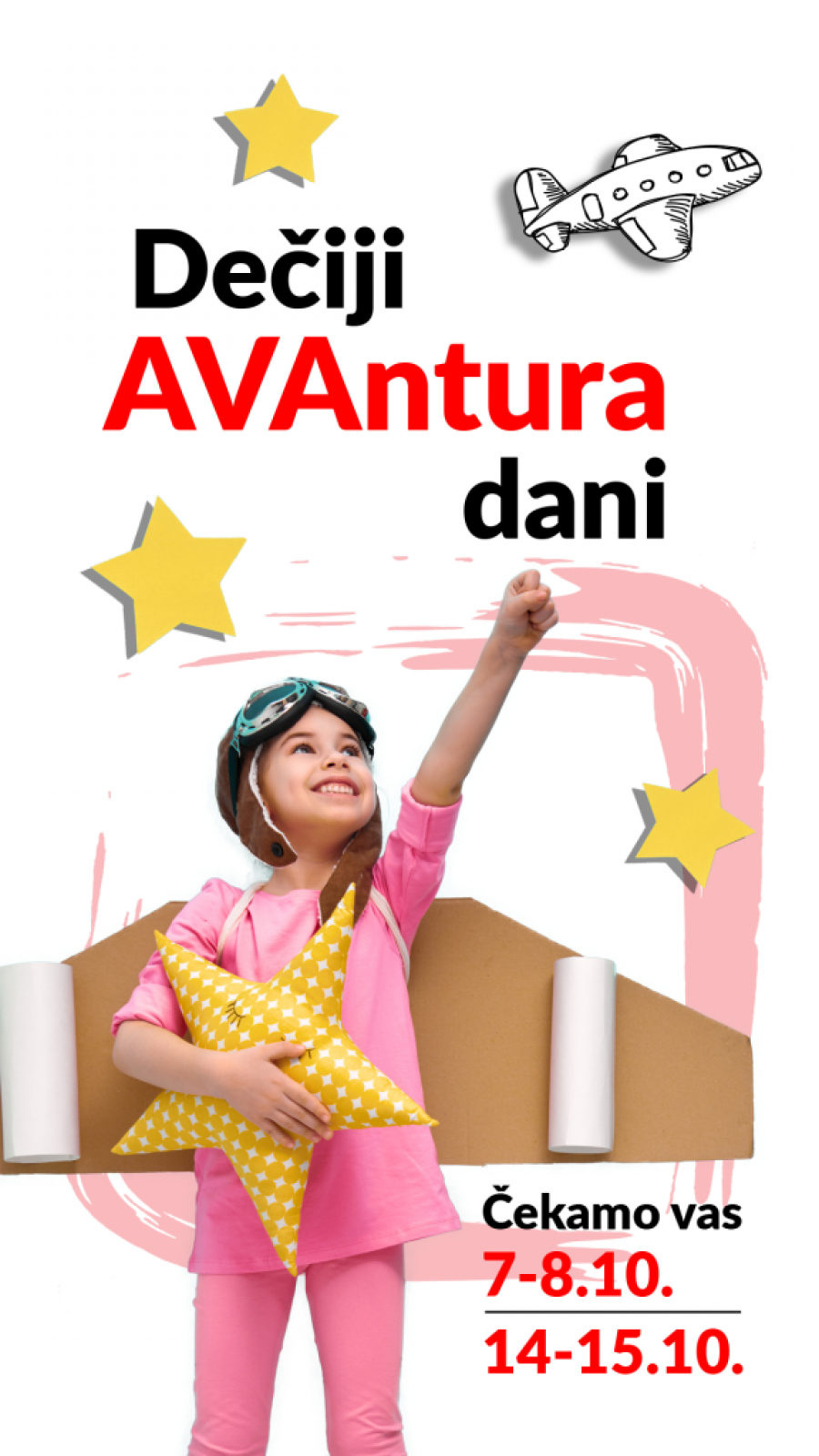 Naredna dva vikenda rezervisana su za sjajnu zabavu za mališane u okviru "Dečije AVAnture" koja će se održatiu održati u AVA shopping parku, od 12 do 18 časova ovog vikenda, kao i narednog (14. i 15. oktobar) mališane očekuje penjanje na veštačku stenu, oslikavanje lica kao i mnoštvo drugih zabavnih sadržaja, učenja i lepog druženja.