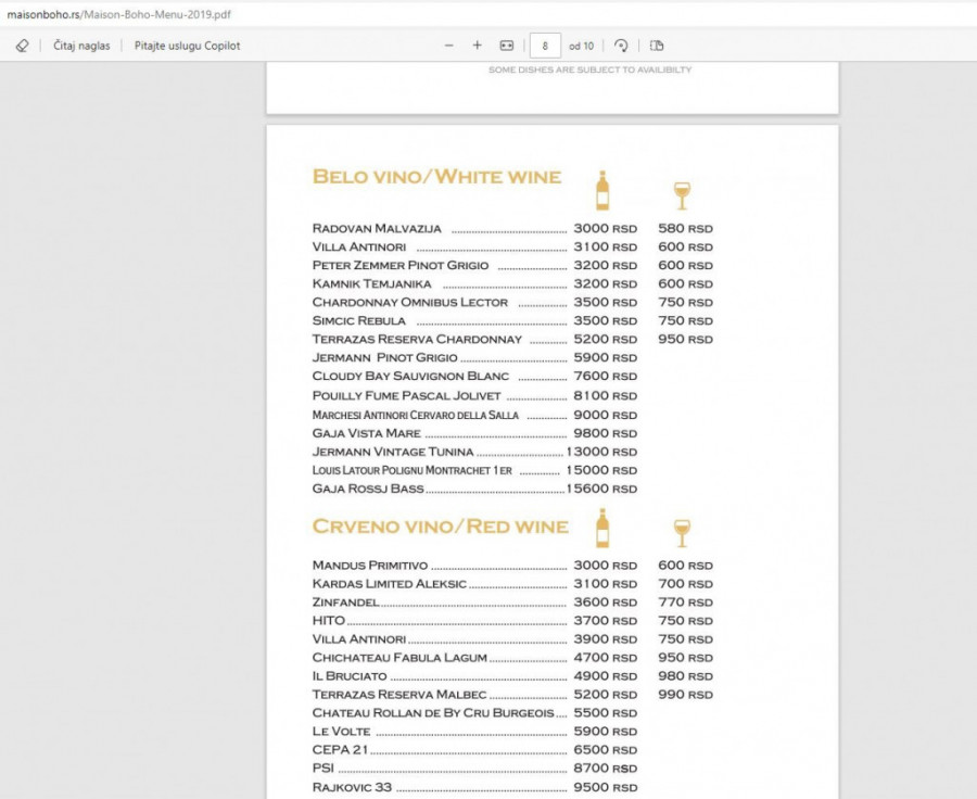 Popularni beogradski restoran "Mezon boho" (Maison boho) mesto je gde će vas tri čaše vina, ukoliko ne budete krajnje oprezni, koštati koliko i ručak za troje u nekom drugom solidnom prestoničkom restoranu.