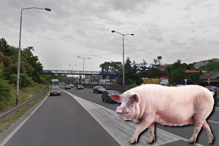 HIT SNIMAK IZ SURČINA! Putari jure svinju na auto-putu, ona se šeta između bankina! (VIDEO)