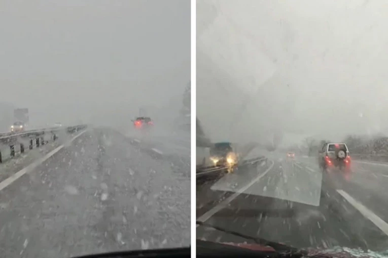 Na auto-putu Beograd-Niš jedan od učesnika u saobraćaju zabeležio je kamerom svog telefona snežnu vejavicu.