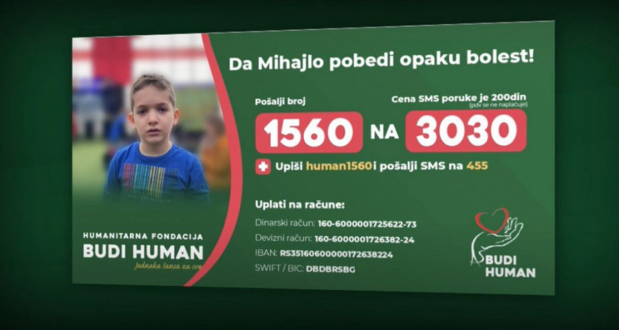 Podsetimo, Mihajlo je osmogodišnjak koji boluje od tumora mozga. Simptomi bolesti pojavili su se u vrlo kratkom roku od nedelju dana u vidu jake glavobolje sa povremenim povraćanjem, gubitkom ravnoteže i perifernog vida, potom i krizom svesti nakon čega je specijalističkim i dijagnostičkim pregledima utvrđeno postojanje ekspanzivne lezije u levoj cerebralnoj hemisferi.