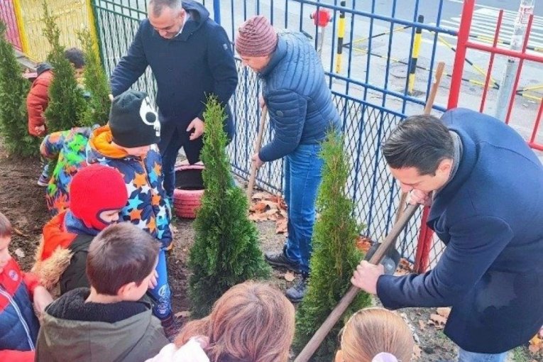 POŠUMLJAVANJE VAŽNO ZA ZAŠTITU ŽIVOTNE SREDINE I ZELENIJI SAVSKI VENAC: 40 novih sadnica drveća u vrtićima PU ''Savski venac''