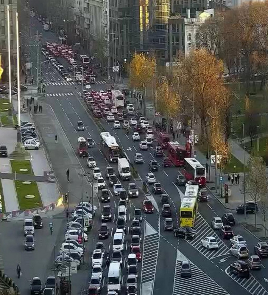 Prema trenutnom preseku, najveće gužve su na mostovima, i to u pravcu ka centru grada, ali i u delovima samog centra - Nemanjinoj ulici, Takovskoj, u Bulevaru kralja Aleksandra, kod Vukovog spomenika. Zakrečenje je i na velikim saobraćajnicama na Novom Beogradu.