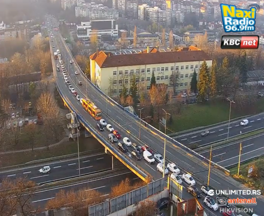 Plavi most je zakrčen saobraćajem, dok je nešto bolja situacija u ovom trenutku na auto-putu, kod isključenja za Konjarnik, gde je inače velika gužva u jutarnjim satima.