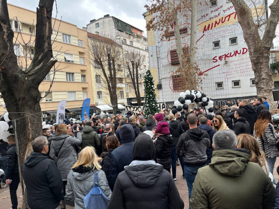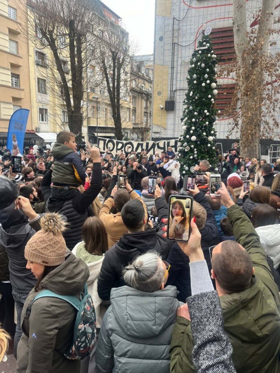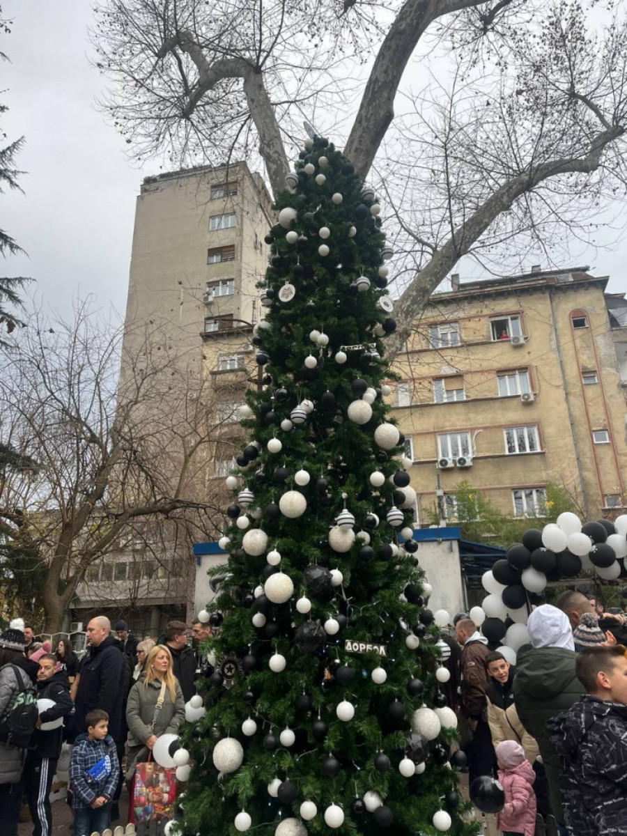 Na Dorćolu smo zatekli veliki broj navijača, mališana sa roditeljima, ali i deda mraza koji je pored ogromne crno-bele jelke najmlađe obradovao paketićima. Tu su bile i animatorke koje su sve vreme zabavljale klince.