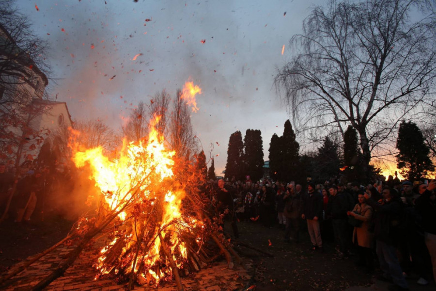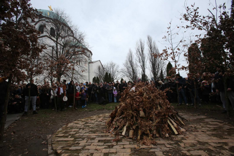 ZAPALJEN BADNJAK ISPRED HRAMA SVETOG SAVE - NESTVARNI PRIZORI! Tradicionalnom obredu prisustvovao veliki broj vernika! (VIDEO)