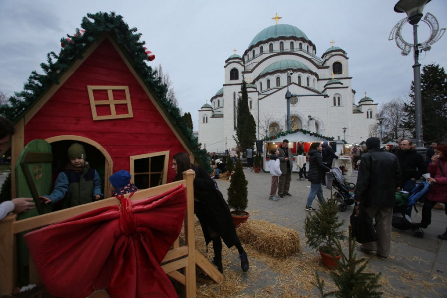 Ispred Hrama Svetog Save pravoslavni hrišćani obeležavaju Badnji dan, praznik uoči Božića, a tradicionalnom paljenju badnjaka prisustvovao je veliki broj vernika, među kojima je dosta roditelja sa decom, starijih osoba, kao i pripadnika Vojske Srbije. Službu kojom su badnjaci osveštani uveličalo je pevanje crkvenih pesama, koje slave rođenje Isusa Hrista, u izvođenju crkvenog hora.