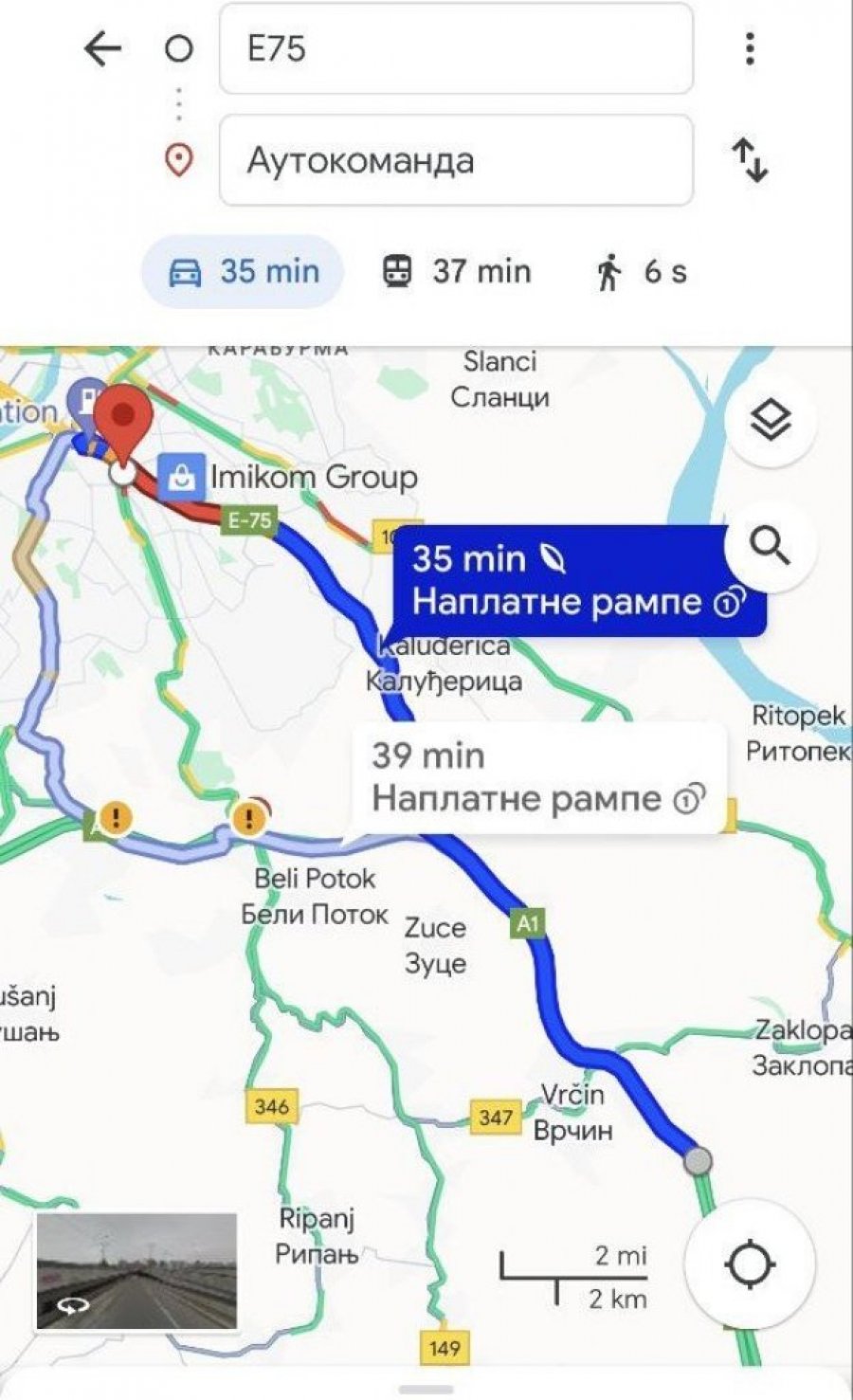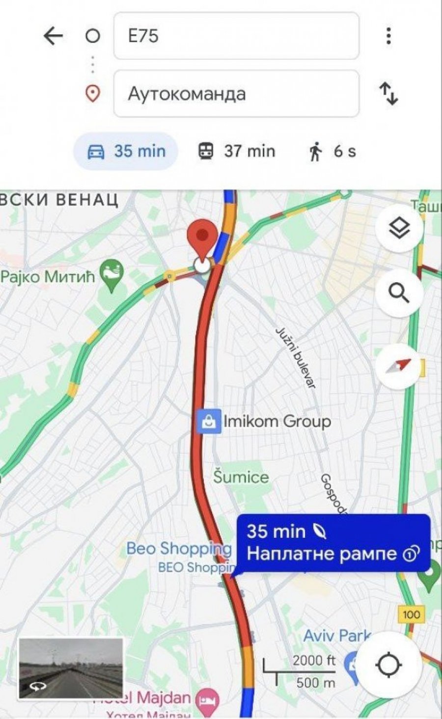 Prema informacijama koje su dostupne na "gugla mapama", ako se uputite od naplatne rampe Vrčin do Autokomande, trebaće vam 35 minuta, što je oko 15 minuta više nego uobičajeno vreme koje je potrebno kada nema gužve.