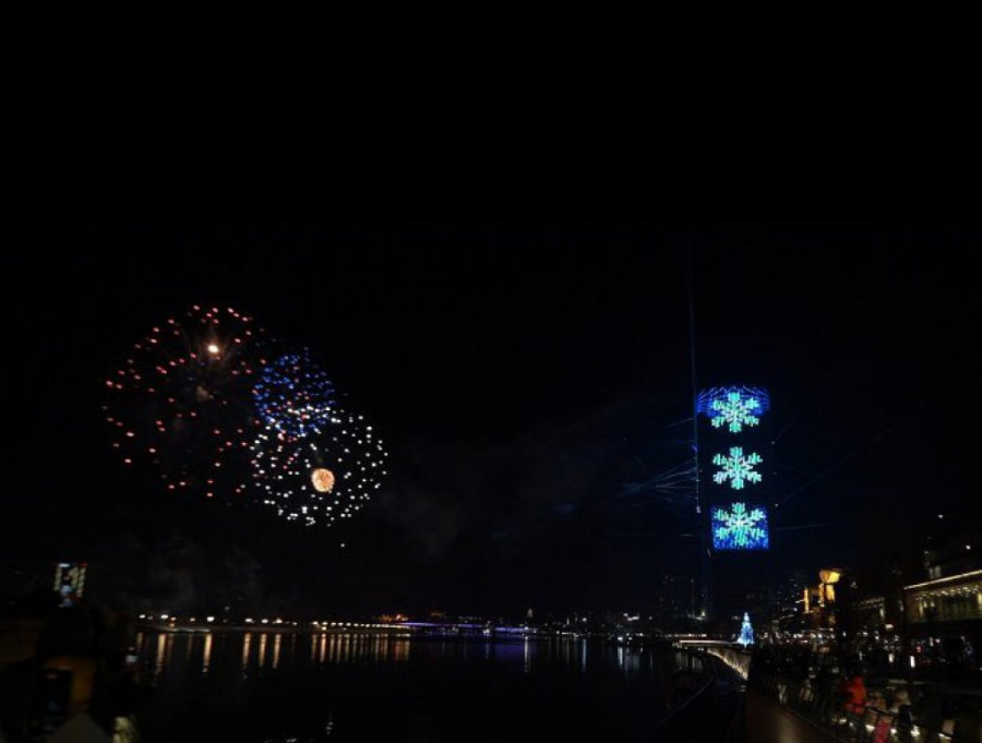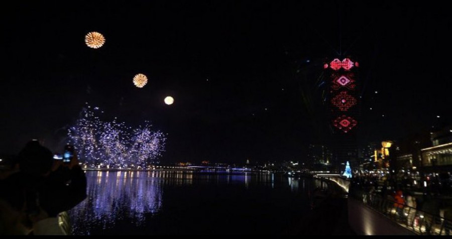 Neposredno pre ponoći, Kula Beograd je bila poprište emitovanja specijalne novogodišnje projekcije sa nacionalnim simbolima, praćene pirotehničkim performansom na nebu iznad Save. Očaravajući crveno-plavo-beli vizuelni šou pratio je prigodnu muziku sa nacionalnim motivima, stvarajući atmosferu koja je ostavila snažan utisak na sve prisutne.