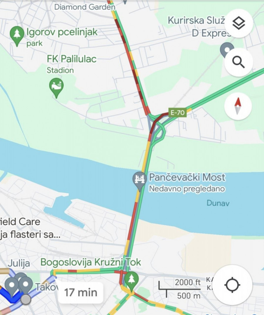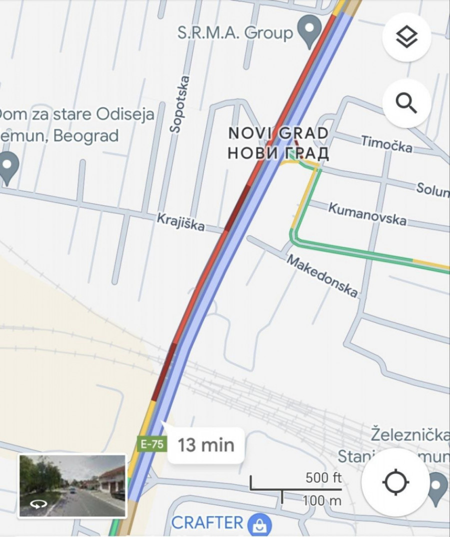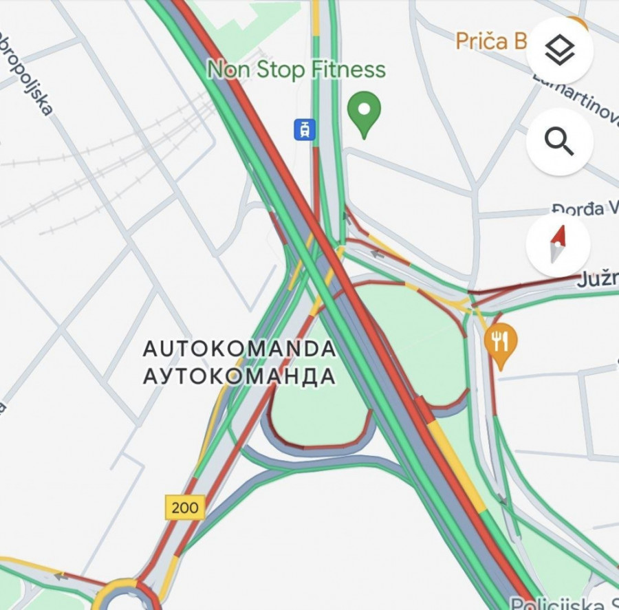 Prestonica je i ovog jutra pokrivena velikim brojem vozila i pojačanim saobraćajem. Takva je situacija na Autokomandi, čiji prilazi su najvećim delom jarko crvenom bojom prikazani na Gugl mapama. To znači da su velike gužve na gotovo svim okolnim ulicama.