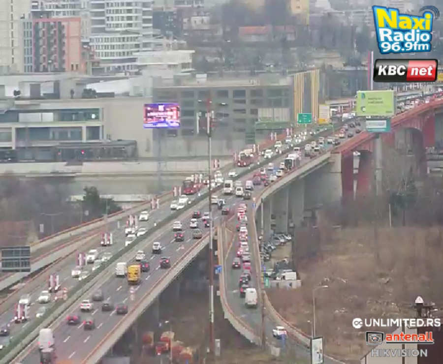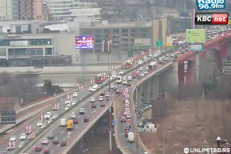 I na Plavom mostu je ovog jutra velika gužva, kao i na deonici auto-puta kroz Novi Beograd.