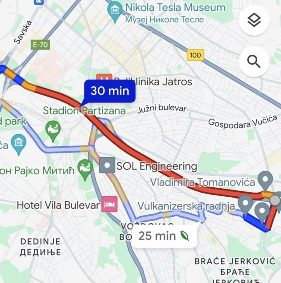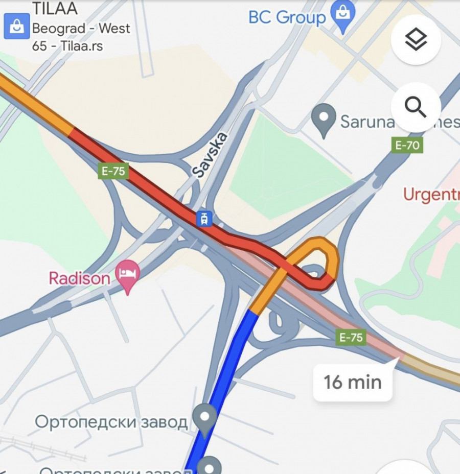 Trenutno je kritična situacija na auto-putu, naročito na delu od Plavog mosta ka Autokomandi, gde vozila gotovo da se jedva pomeraju, a na Gugl mapama je označeno jarko crvenom bojom, što znači da je na tom delu puta gužva.