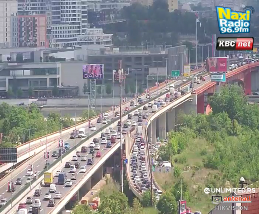Ogromne su gužve na Brankovom mostu, pa su primetne koline iz pravca Novog Beograda ka centru i počinje još pre mosta, od Bulevara Mihajla Pupina, malo pre TC Ušće.