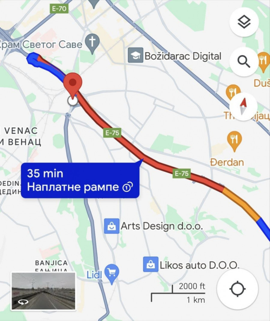 Najkritičnije tačke danas su Plavi most, ali i deo auto-puta od Plavog mosta ka Autokomandi gde se formiraju kolone vozila i vozila idu malom brzinom. Ovi delovi puta su na Gugl mapama od jutros označene crvenom bojom.