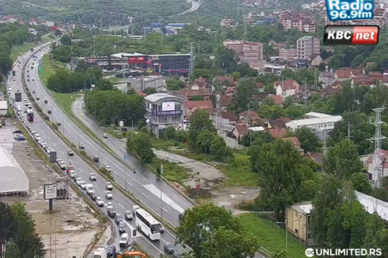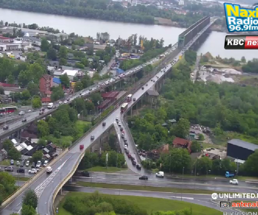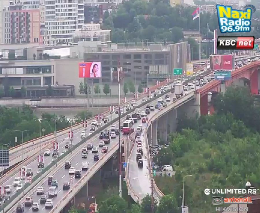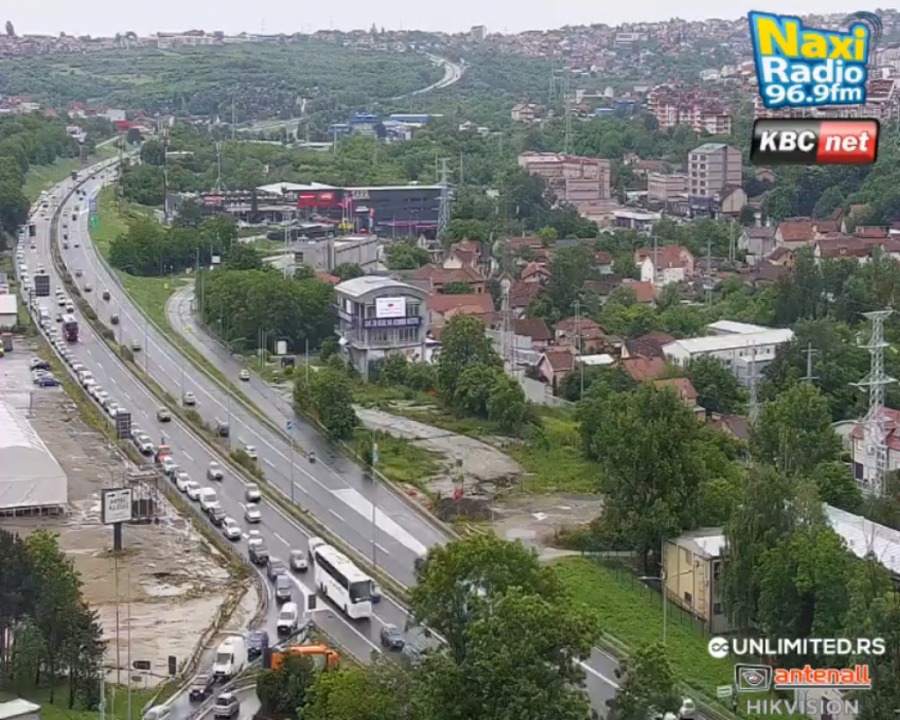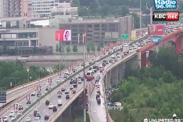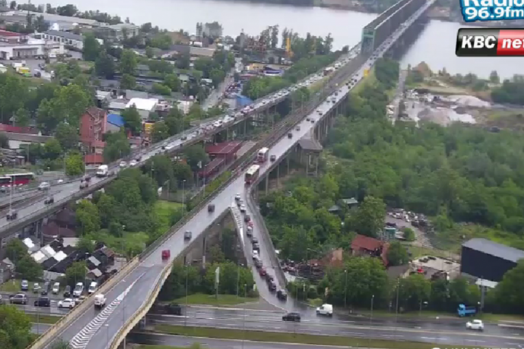 Na Plavom mostu se formira kolona, a isto je i na delu auto-puta upravo od Plavog mosta ka Autokomandi.