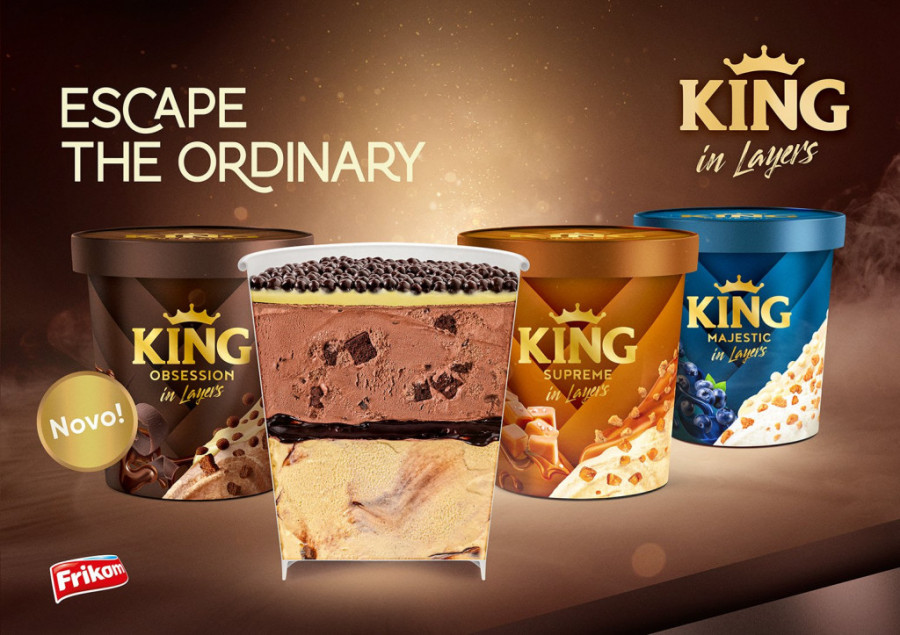 King in Layers savršeno opisuje zvanični slogan „Escape the ordinary“ - svaki sloj donosi novi ukus, autentičnu teksturu i jedinstveni doživljaj, čineći konzumiranje ovog sladoleda potpuno novim iskustvom. Od vrha do dna King čaše čeka vas više različitih ukusa, komadića, tekstura i preliva, koji će vas potpuno iznenaditi. King neprestano teži da svojim obožavaocima pruži jedinstveno multisenzorno iskustvo u svakom zalogaju, a sa ovim novim formatom, tu harmoniju ukusa podiže na još uzvišeniji nivo. Uz ovu inovaciju iz Frikom ponude, svaki zalogaj će biti uzbudljivo putovanje od početka do kraja!