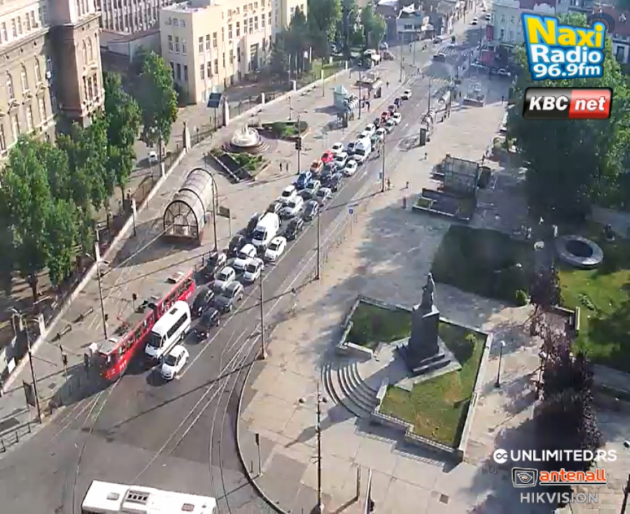 Na trgu Nikole Pašića, saobraćaj se odvija otežano zbog velikog broja automobila koji se tu nalaze. Situacija je takva da vozači moraju biti strpljivi dok pokušavaju da se probiju kroz gužvu.