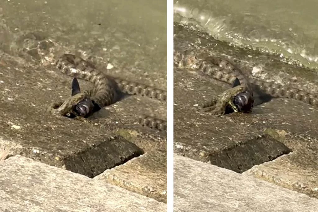 Na Zemunskom keju, slučajni prolaznik je svedočio nesvakidašnjem prizoru, zmija je davila ribu, izazivajući radoznalost i pitanja o identitetu ovih životinja.