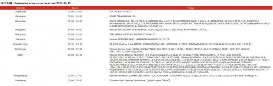 Elektrodistribucija Beograd za danas je najavila isključenja struje zbog radova u devet beogradskih opština.