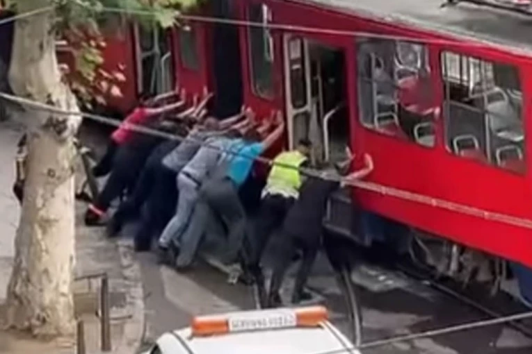 TRAMVAJ ISPAO IZ ŠINA: Nekoliko građana guranjem pokušali da ga vrate (VIDEO)