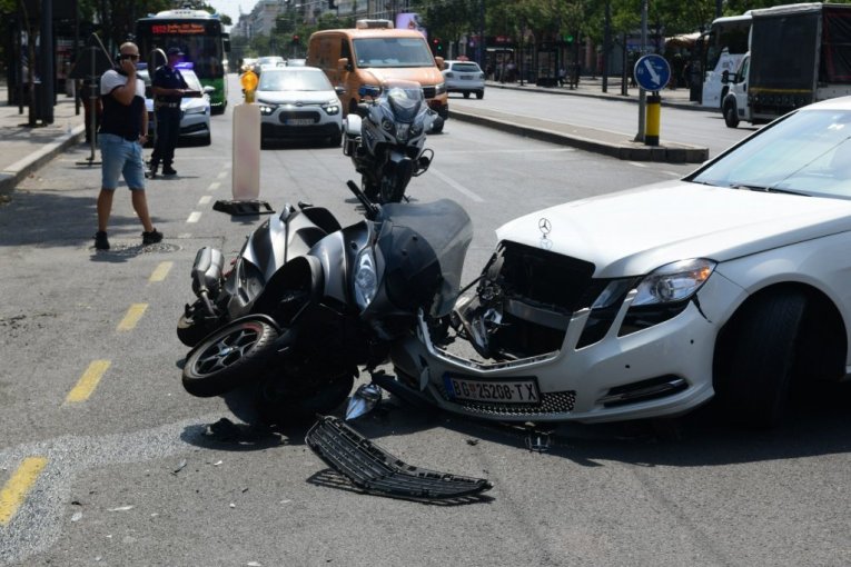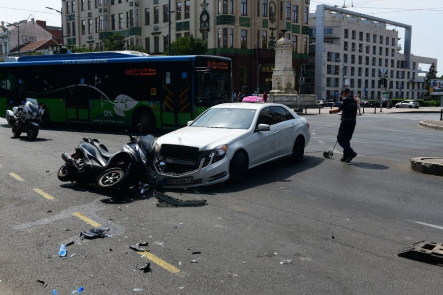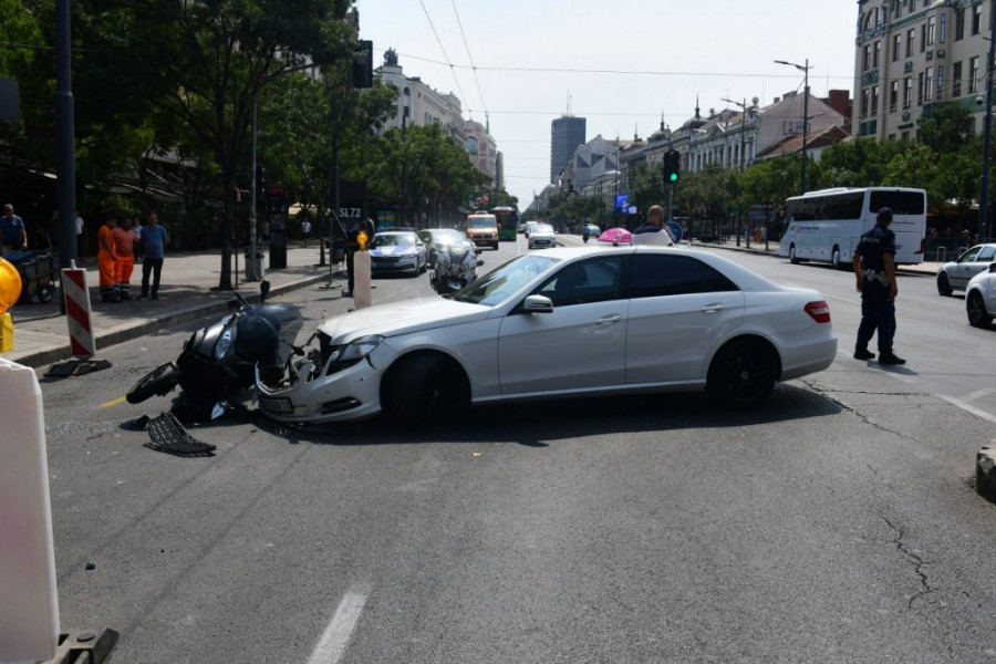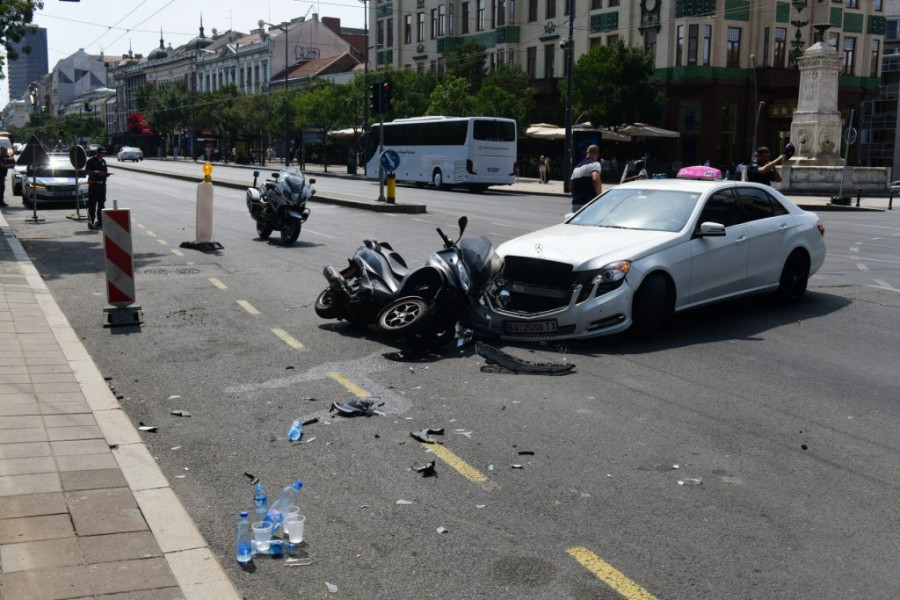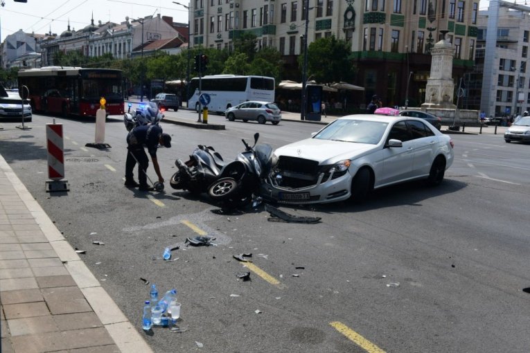 Težak sudar se dogodio danas pre podne na Terazijama kada je došlo do sudara motocikla i taksi vozila kod Hotela Moskva.
