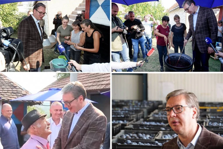 Tokom obilaska farme "Jovanović voće" u Osečini, Vučić je rekao da se način obrade zemlje promenio i da nije kao u vreme kad je on bio mali.
