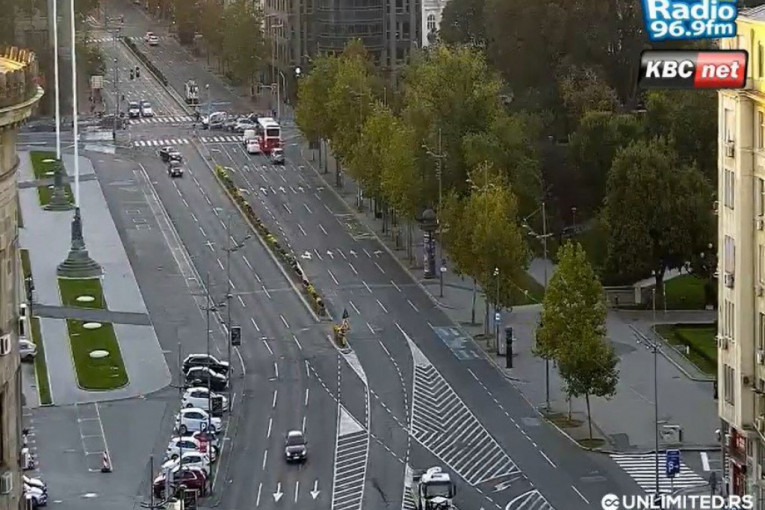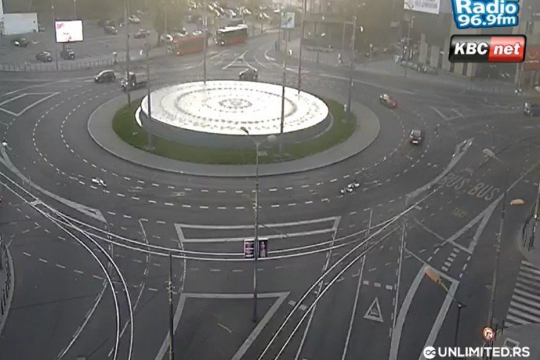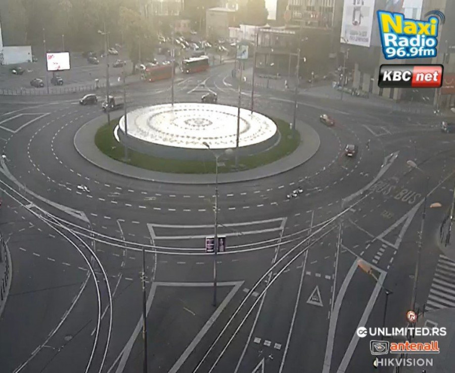 Na Slaviji gotovo bez ikakvog saobraćaja, vozila se kreću bez ikakvih zadržavanja iz svih pravaca.