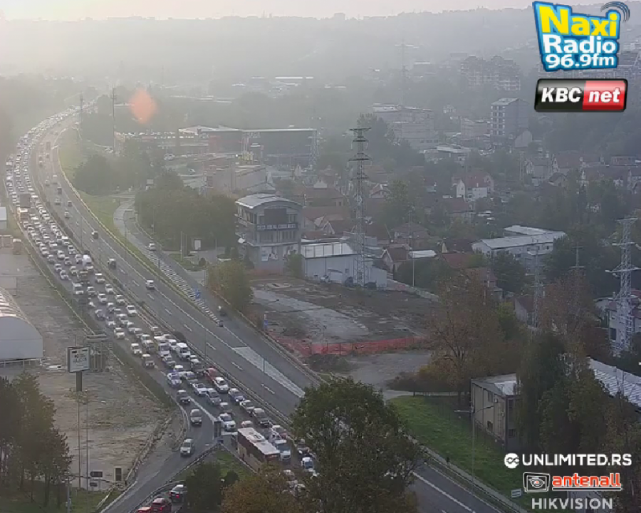 Na auto-putu, na ulazu u Beograd, situacija je kritična. Kolone automobila se protežu od Laste prema gradu, a vozila se gotovo uopšte ne pomeraju, što stvara frustraciju među vozačima.