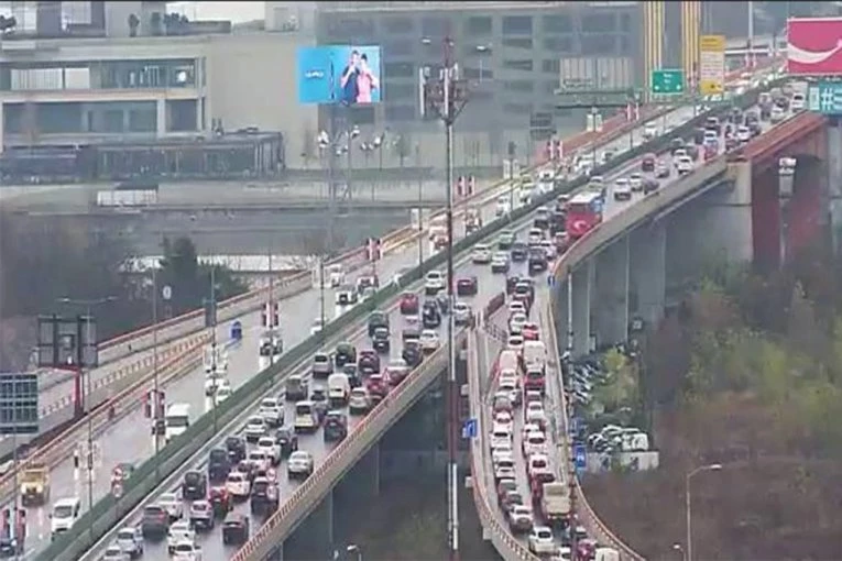 Usporen saobraćaj nije zaobišao ni jedan od najprometnijih mostova u Beogradu, Gazelu, u smeru od Novog Beograda.