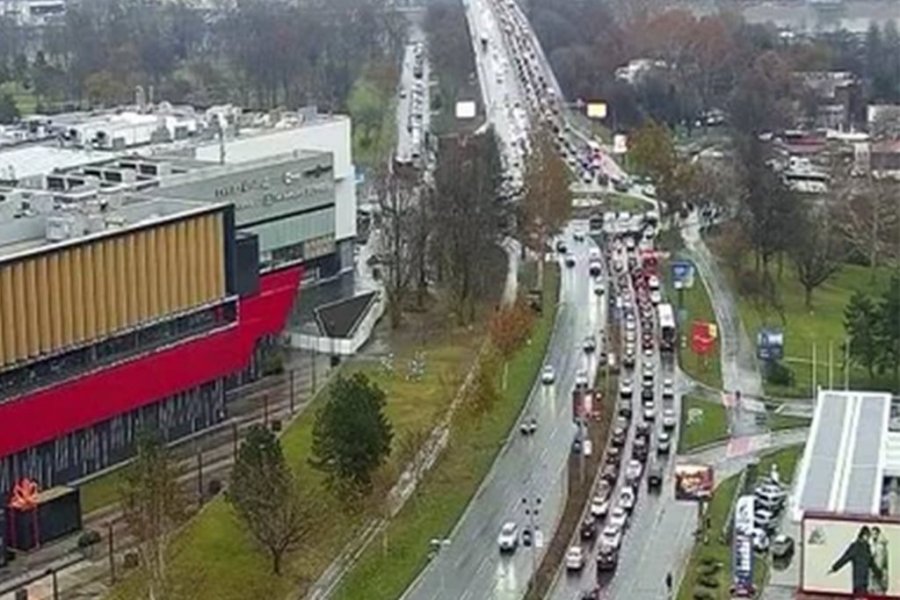 Gužve koje su na Novom Beogradu na kružnom toku kod tržnog centra Ušće u smeru ka centru.
