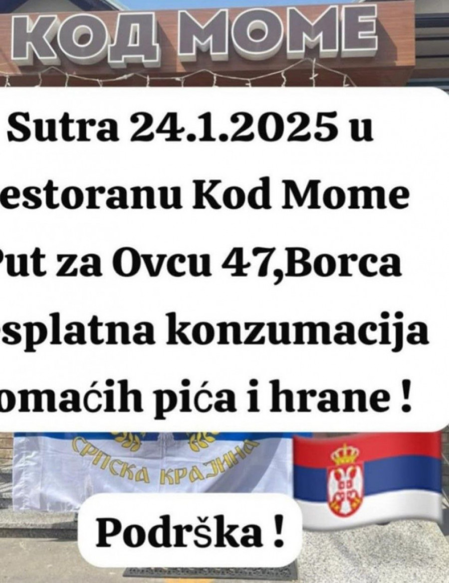 Danas, 24. januara, na dan kada je opozicija naredila svojim poslušnicima da krenu u blokadu i rušenje države, u desetinama beogradskih restorana i kafića vlasnici u znak borbe protiv ove nove opoozicione pošasti, nude svojim gostima besplatnu konzumaciju hrane i pića, kao i velike popuste za sve koji se danas odluče da brane srpsku privredu.