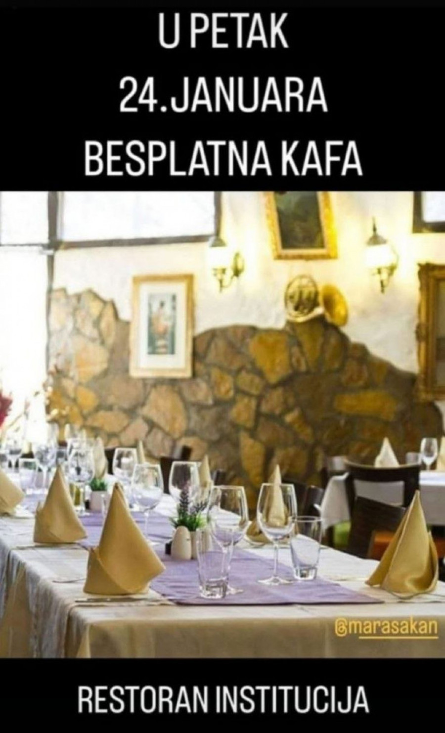 Dajemo vam i spisak restorana i kafića u kojima danas možete dobiti besplatnu hranu i piće