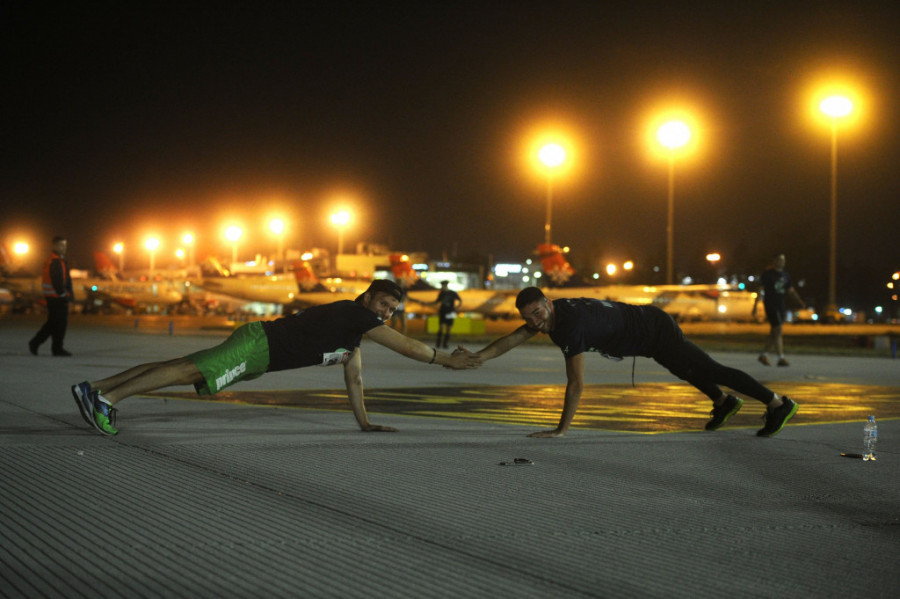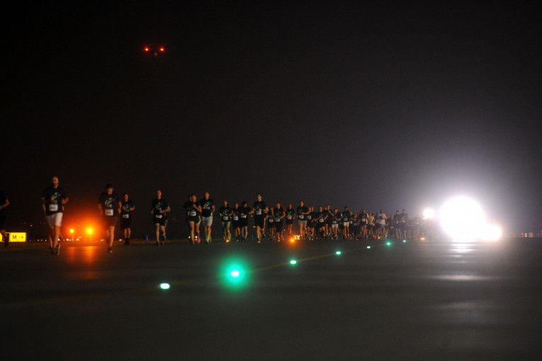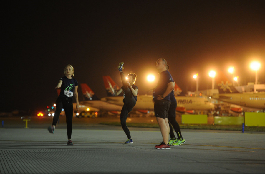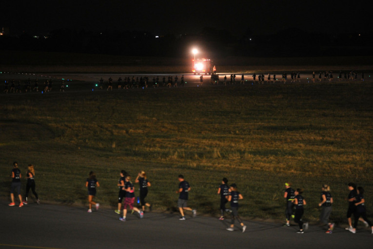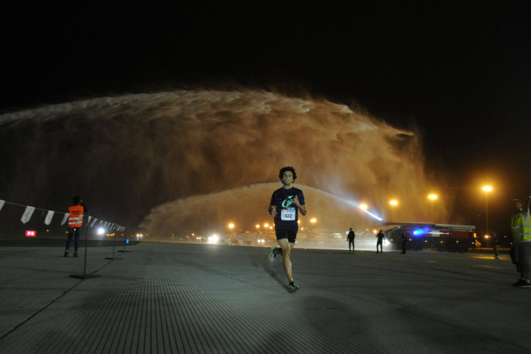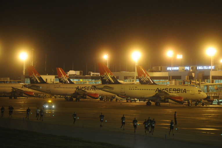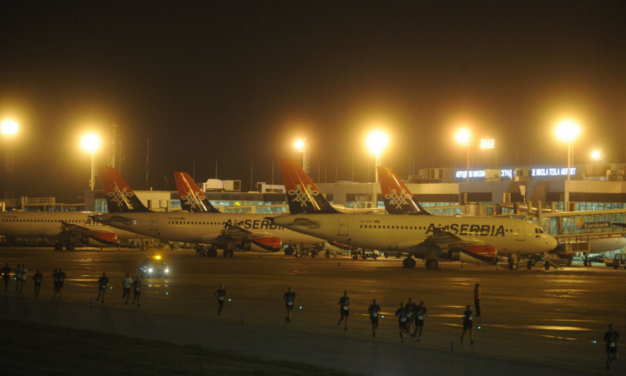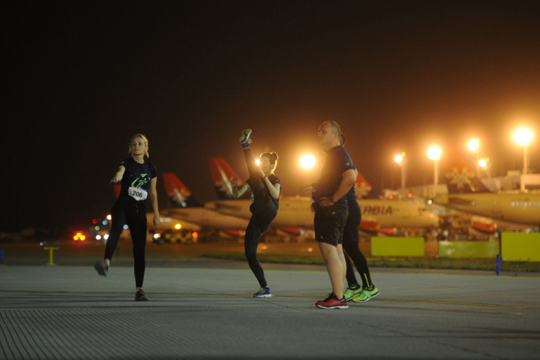 Foto: Tanjug/F. KRAINČANIĆAtraktivna trka od pet kilometara na deonici poletno-sletne i rulne staze, zbog koje beogradski aerodrom nije imao letove od ponoći i pet sati kasnije, jedinstven je događaj u regionu koji su organizovali aerodrom "Nikola Tesla", Beogradski maraton i Grad Beograd.