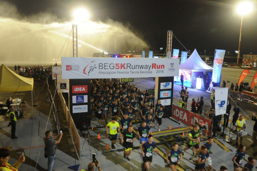 Prva trka "Beograd na pisti" (Beg 5K Runway Run) održana je u noći između subote i nedelje na aerodromu "Nikola Tesla" uz učešće oko 600 takmičara.