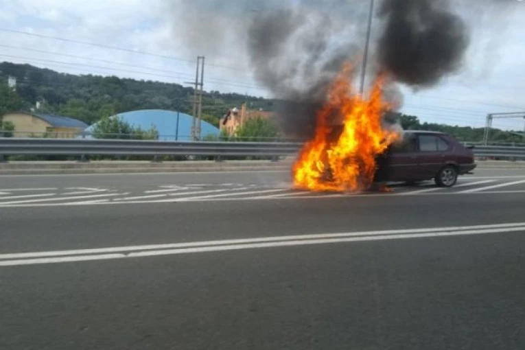 (FOTO) BUKTINJA NA MOSTU NA ADI: Zapalio se automobil u pokretu