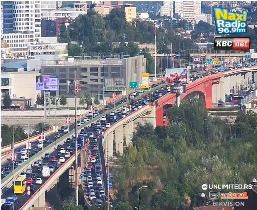 Velika je gužva i na moto-putu (nekadašnji auto-put) kroz Beograd, a gužve se odatle prelivaju na most Gazela, gde su oba pravca zakrčena.