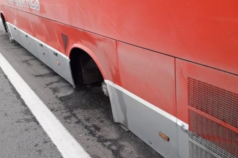 (FOTO) FILMSKI PRIZOR KOD DOLJEVCA: Sa autobusa u pokretu otpala dva točka, putnici šokirani, zahvaljuju Bogu što su živi!