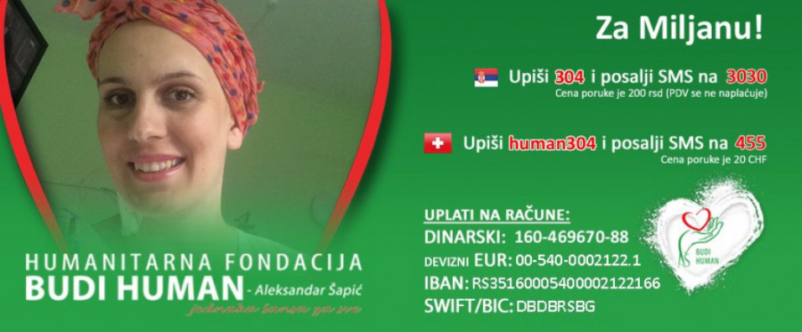 Miljana je i profesor književnosti, supruga, žena koja se ne predaje. Pomozite joj da uspe i vrati se svojoj porodici: Dinarski račun: 160-469670-88 |