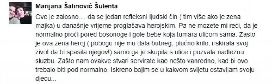 "Meni je sve to izgledalo prilično namešteno", još jedan je od komentara. Nipodaštavanje Irene samo zato što je Srpkinja nastavljeno je rečima: "To što je učinila učinio bi svaki hrvatski građanin ne očekujući hvalospeve u medijima", te da je spasavanje jednogodišnje bosonoge devojčice "vest jedino na zapadu".