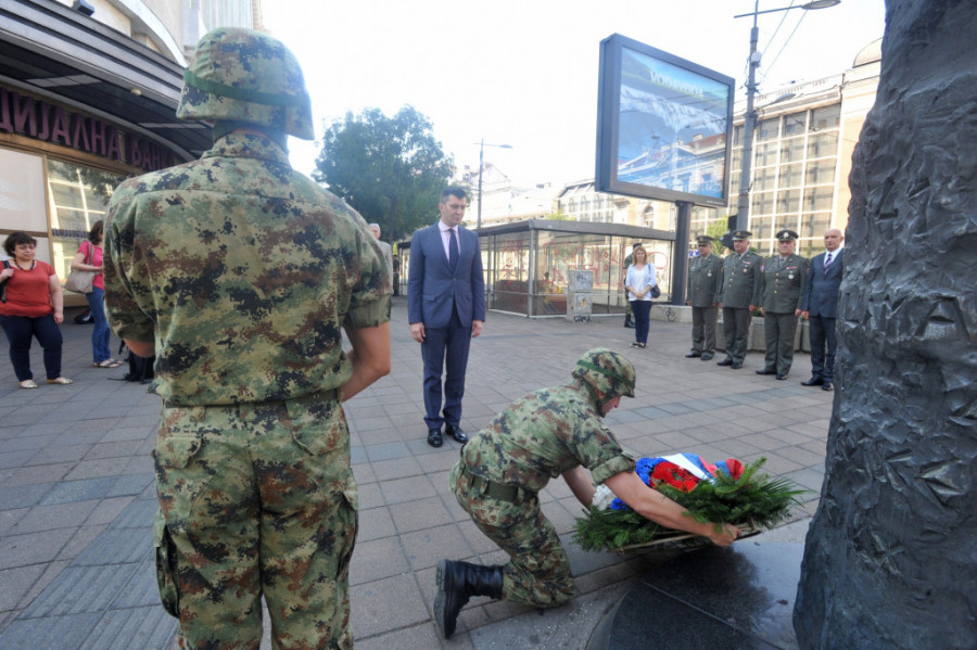 Venac je položio i član Gradskog veća Stevo Tatalović uz prisustvo predstavnika Ministarstva odbrane i Vojske Srbije.