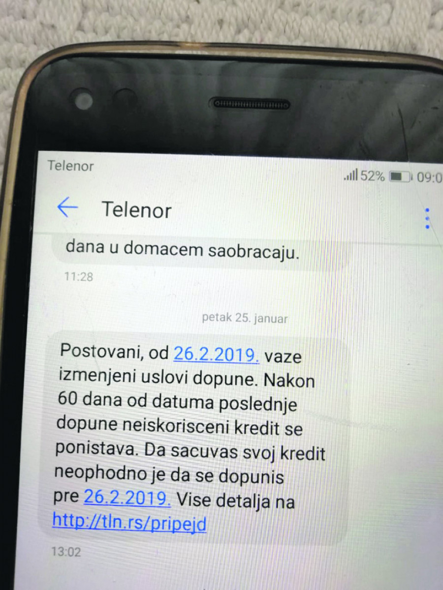Foto: Tanjug/Đ. KOJADINOVIĆNaime, njihovim korisnicima u petak je stiglo obaveštenje da od 26. februara važe novi uslovi dopune i da će im neiskorišćeni kredit biti poništen posle 60 dana od poslednje uplate.