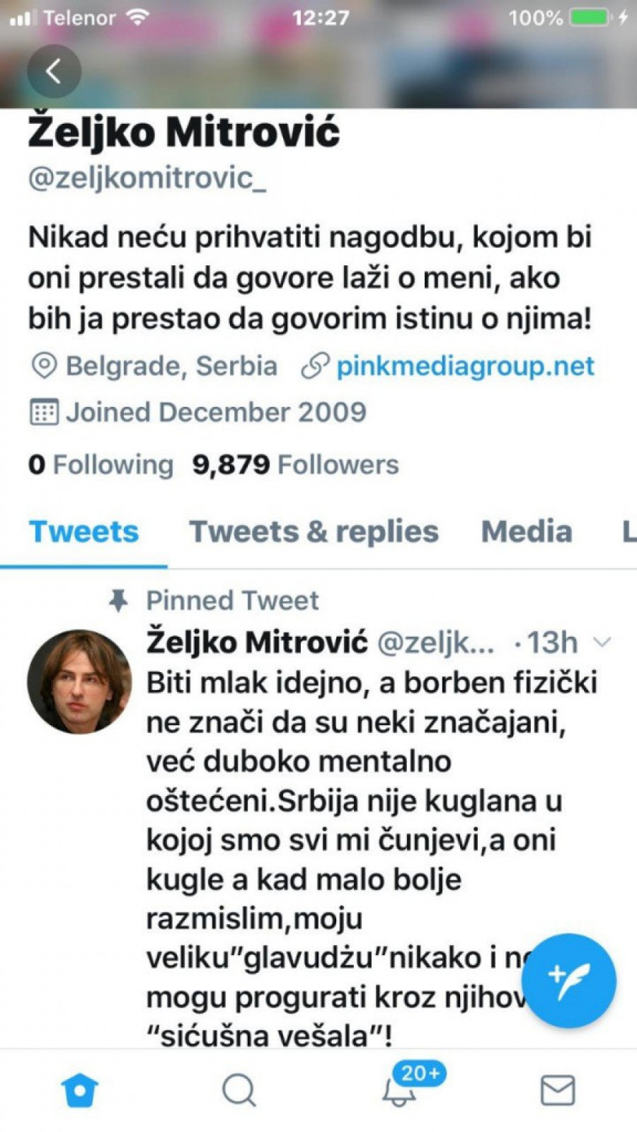 Uostalom, pogledajte šta stoji u Željkovom prvom tvitu: