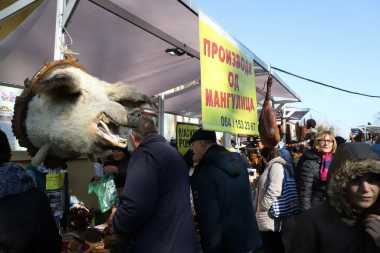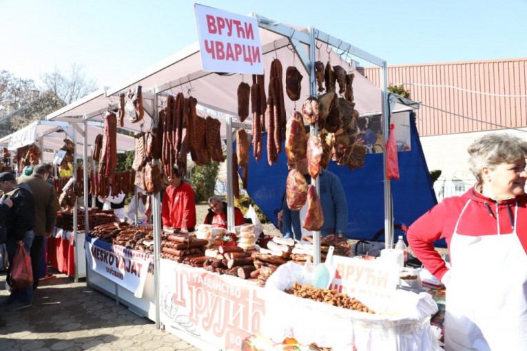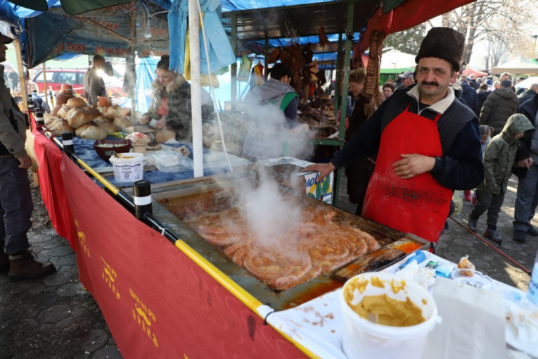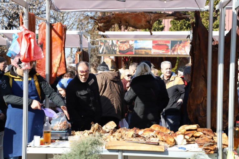 - Oseća se sve slabija kupovna moć naroda. Mi jednako topimo, slažemo, sušimo, spremamo, ali je sve teže izdvojiti novac za ove đakonije - kaže nam Ivana iz Kačareva, sa čijeg se štanda šarene slanine, šunke, pečenice, suva mesa, kobasice, pa kavurme i pihtije.