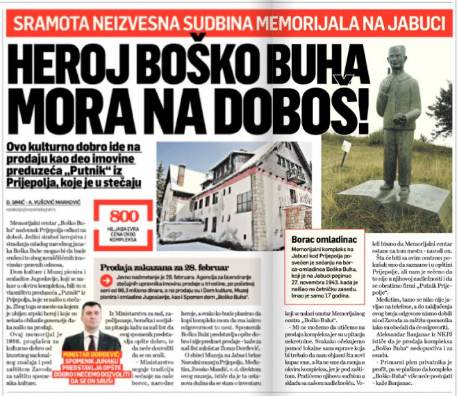 POBEDA! Odustaje se od prodaje memorijala: Srpski telegraf odbranio Boška Buhu