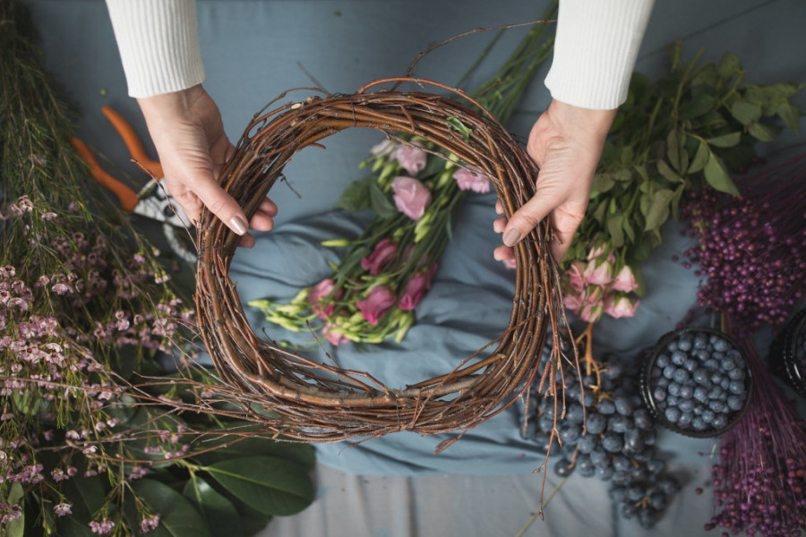 Foto: Miralem ČauševićOd grančica breze i vrbe ispletite kružnu formu koju na krajevima pričvrstite žicom ili kanapom. Ovu vrstu grančica biramo jer su dovoljno čvrste da izdrže težinu cveća koje ćemo uplesti, ali i elastične da poprime oblik savršenog kruga.