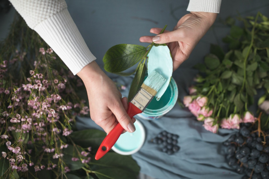 Cveće i listove farbamo blago zelenom nijansom koja pre svega nije agresivna i neće oštetiti strukturu biljke.