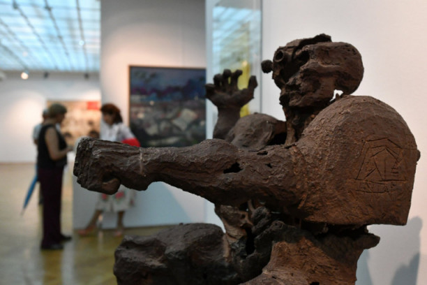 Foto: www.profimedia.rsKnjiževnik Dragan Lakićević je, otvarajući izložbu, istakao da je ona "opelo i apoteoza", i da u "njoj živi jedan ogroman svet od pogroma sa đavoljim kolom do vaznesenja, od koca do bespilotnih letilica, od moračkih pećina i kanjona do oreola svetih ratnika i oka koje sve vidi".