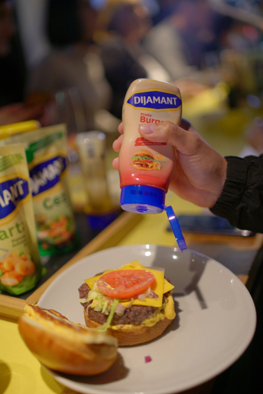 Foto: Promo fotoU društvu velikog broja predstavnika medija kompanija Dijamant je kroz gastro druženje predstavila ukuse novih Burger i Senf preliva. Prisutni su se nadmetali u pripremi jedinstvenog burgera u čemu im je od velike pomoći bio Dijamant majonez, kao i prelivi uz koje priprema obroka "uspe svaki put".