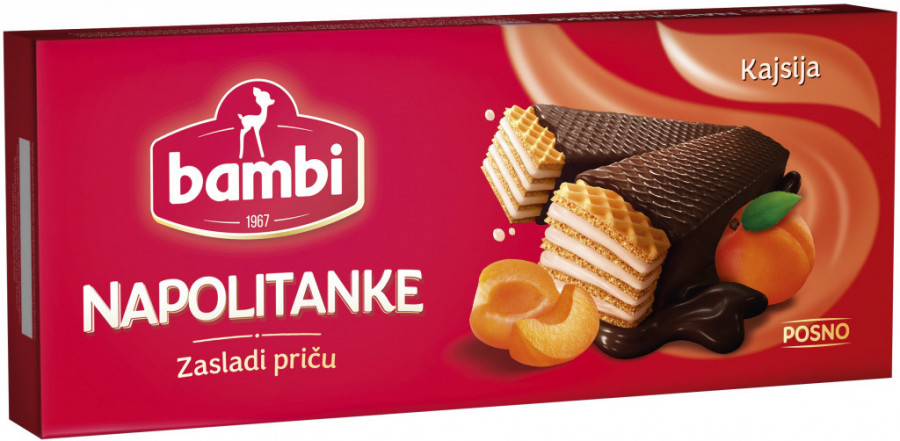 Bambi Napolitanke su idealne za deljenje, upotpuniće Vaše svakodnevne rituale ispijanja kafe ili čaja kao i za neformalno poklanjanje prijateljima ili dragoj osobi.
