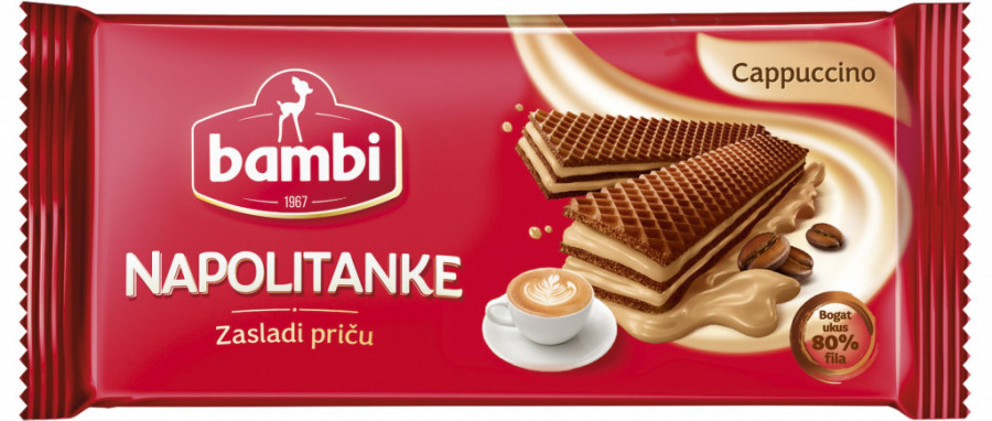 Foto: Promo fotoPored već dobro poznatih ukusa slasnih Bambi Napolitanki, kao što su: mleko-lešnik, čokolada, lešnik, limun, jagoda-šlag, crna i bela čokolada, malina-kakao, potrošaći od sada mogu uživati i u ova dva nova, jedinstvena ukusa: capuccino i kajsija.
